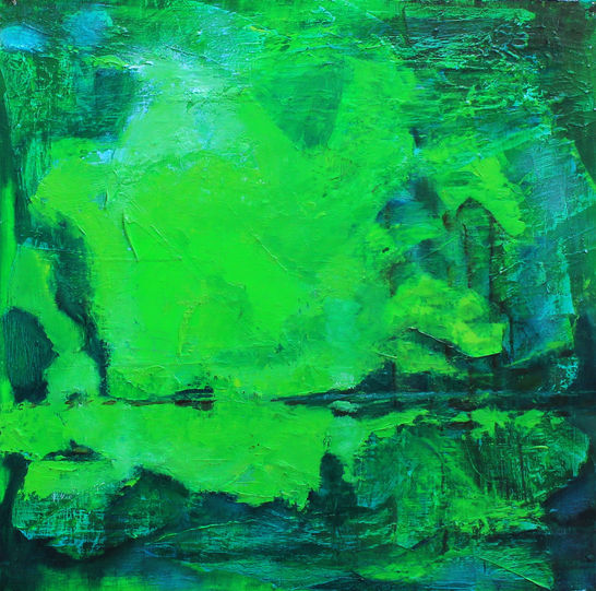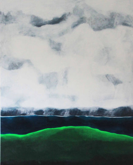Inside Outside represents a significant step for Sophie's painting process. Empowered by larger canvases, Sophie experimented with greens and whites to exteriorise her inner landscape, projecting perceptions onto existing locations.